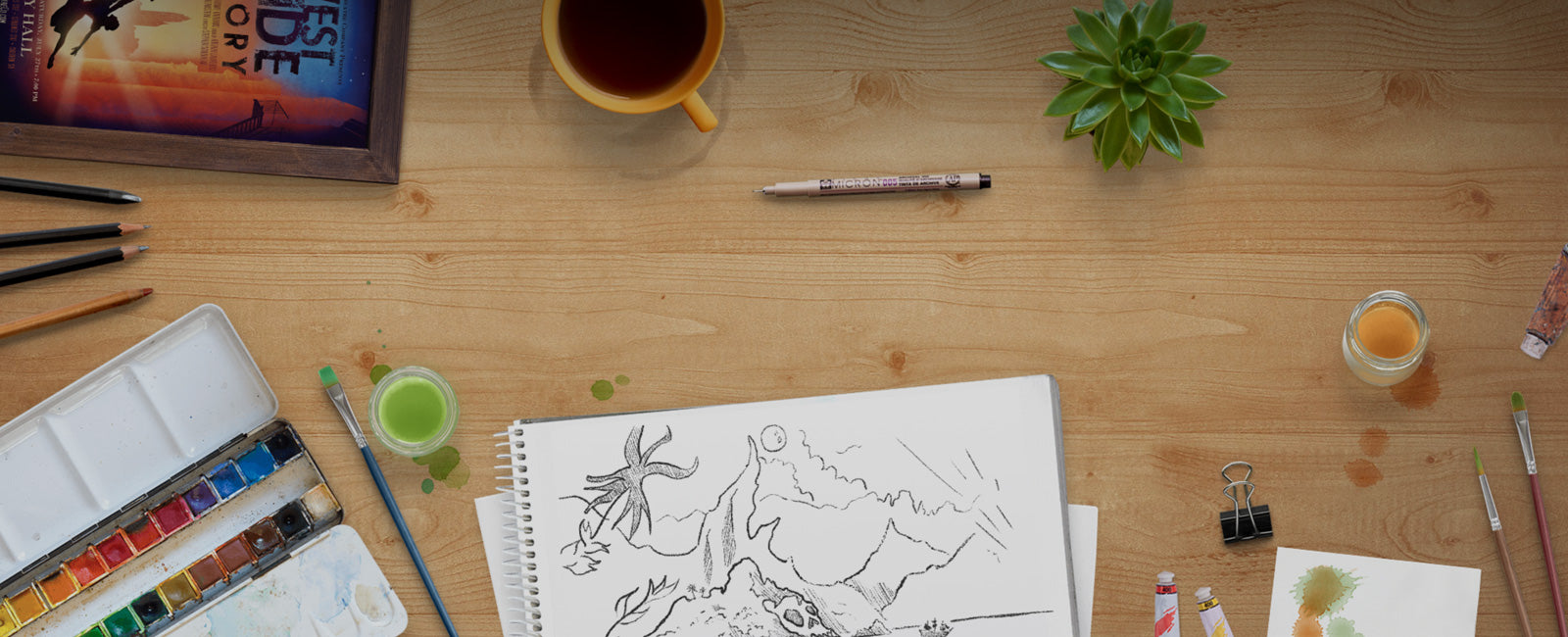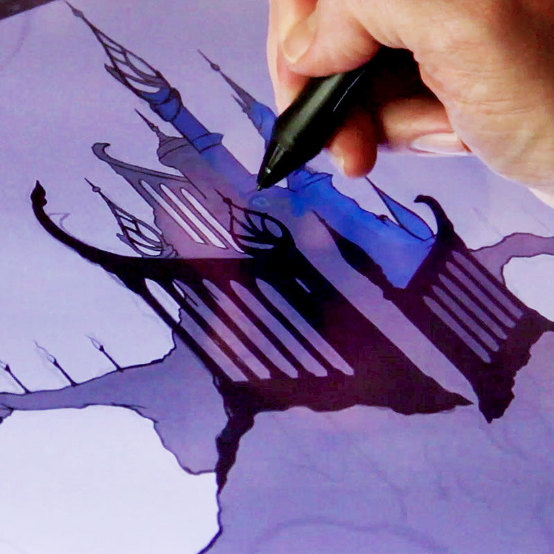 After we work out the visual design, color and mood of the projections with you, we’ll draw the scenes by hand. We then scan and illustrate them with digital tools.